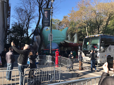 What we like about a lot of our trips is the backstory, the prestory, the understory. And all that happened the day before Thanksgiving up near Central Park where the parade was being amassed and all the floats were staged for final assembly and balloons were laid out in order of viewing and being blown up. We learned that definitely, it's a thing to see the parade being put together. You have to go through a long line (of course, it's NYC) and go through police screening (of course, it's NYC, or anywhere these days) for security, then you can walk by the fenced off street areas and watch the process.